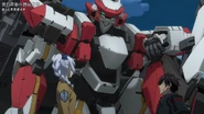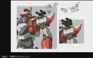 The suit was designed by AL for direct combat engagement and specifically modified to suit Sousuke’s battle style, making it even more powerful. This called for a high-output power plant and an enhanced muscle package which is easily seen in the arms. These new systems and advancements give the suit exceptional strength and mobility far beyond what the Arbalest could achieve. In the front of the suit, there are two smaller arms hidden within the frame. This allows the suit to throw grenades and even Anti-Tank daggers without having to use its own arms. The suit’s paint scheme is meant to give it a fiery feeling in battle. Wraith once said that she could feel an intense heat from the cold Lambda Driver, meaning it wanted action. When the Lambda Driver is used, cooling fibers come out from behind the head, giving it a similar look to the Codarls’ ponytails when their Lambda Drivers are active.